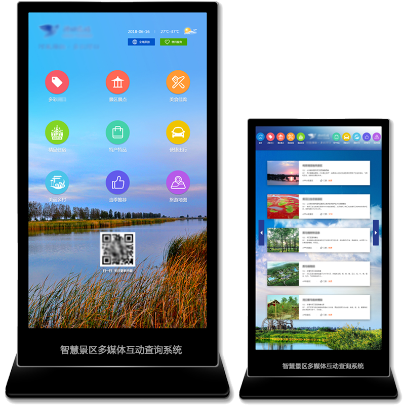 多媒體互動查詢屏是智慧景區的重要組成部分。利用云計算、物聯網、互聯網等新技術,通過寬帶網絡接入,借助多媒體觸摸屏終端互聯設備,結合現有的景區、酒店及機場、車站等公共場所,打造一個游客旅游環節中舒適、“智慧”的休憩場所。