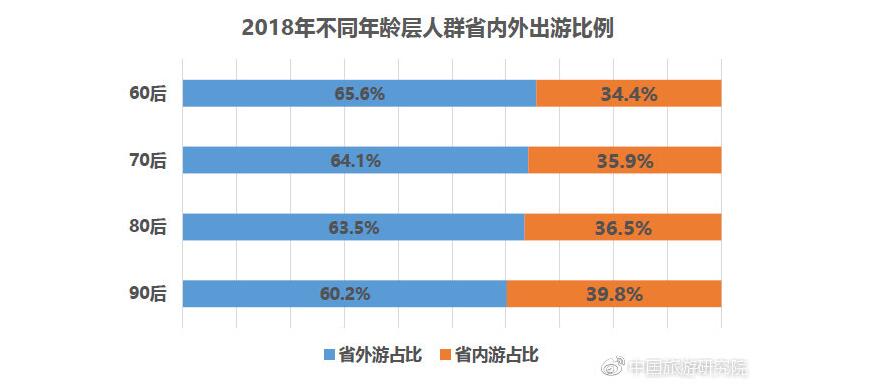 從旅游消費目的地來看,90后游客省內游占比較60后高出5.4個百分點,帶薪休假天數較短、收入水平有限促使年輕游客更偏好短距離出游。