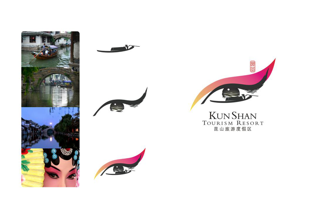 首先,在內容表達上要根植于特色地域文化,對于構建旅游品牌文化符號來說,文字還需要解釋翻譯,文化符號卻能無國界。品牌文化的本質是人類文化,我們為昆山旅游度假區打造的品牌logo,挖掘了昆山所獨有、已傳承千年的傳統文化——昆曲文化,并把其轉化為文化符號。
