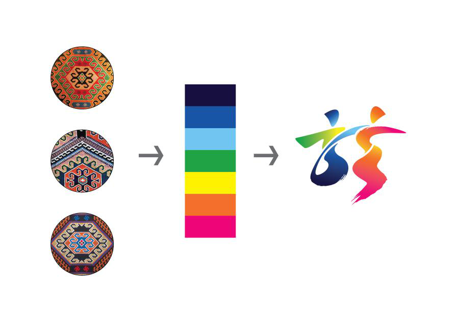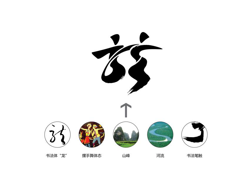 因此在品牌logo的設計上,設計以土家族特有的舞蹈體態擺手舞為文化原型,與書法體“龍”字進行結合,融入當地的山水旅游資源,取色來源于少數民族的服飾,最終形成魅力獨有的文化符號,激發旅游者的記憶與情緒,讓旅游者過目難忘。