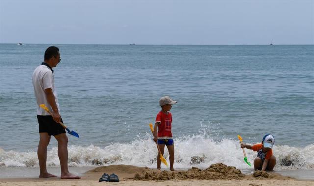 在海南省三亞市天涯海角旅游景區,游客在海邊游玩(4月13日攝)。 新華社記者 楊冠宇 攝