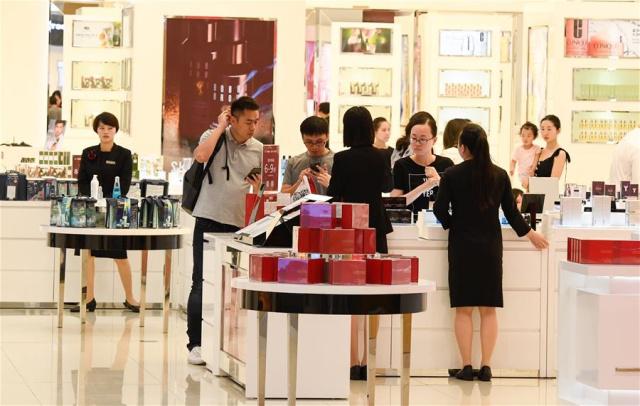 在海南省海口市內的免稅店,顧客在選購商品(4月9日攝)。 新華社記者 楊冠宇 攝