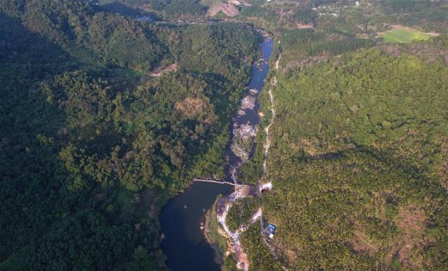 海南省瓊中黎族苗族自治縣瓊中峽漂流區(4月11日無人機拍攝)。 新華社記者 楊冠宇 攝