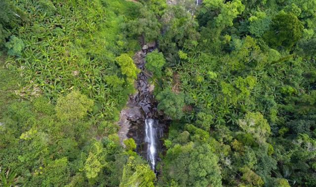 海南省瓊中黎族苗族自治縣百花嶺雨林文化旅游區內的瀑布(4月12日無人機拍攝)。 新華社記者 楊冠宇 攝