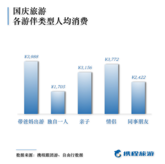 什么年齡段的中國人更偏愛在國慶出行?根據攜程跟團游和自由行訂單數據,80后和90后已經成為國慶出游的絕對主力人群,占出行總人數的51%。而報告顯示,在各年齡段的花費上,50后成為最舍得花錢的人群,單次旅游人均花費達到了3640元。