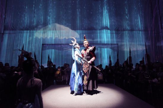 《沙坡頭盛典》首次將魔幻元素融入旅游,并且通過擬人化的表達(dá)方式將沙坡頭三大核心元素沙漠、黃河、綠洲刻畫成為劇中的沙王子、長河公主、桂王子三大主人公,分別代表魔、仙、人三界統(tǒng)領(lǐng)。本劇圍繞主人公桂王子(代表中衛(wèi)先民)與沙王子(代表沙漠災(zāi)害或沙魔)對(duì)長河公主(代表黃河,象征生命與未來)的求親角逐展開,最終以桂王子與長河公主完美結(jié)合,并成功抵御沙魔入侵結(jié)尾。全劇通過一段魔幻愛情故事演繹沙坡頭的前世與今生,讓游客體味與人、仙、魔接觸的逸趣。