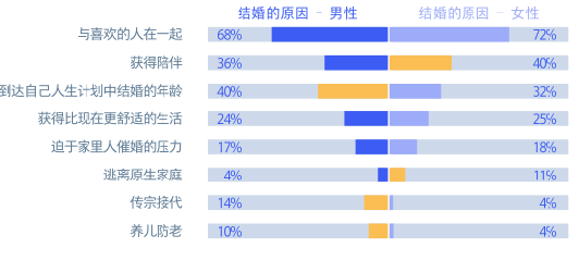 小鎮(zhèn)新青年期望通過(guò)自己的社交圈邂逅美好的愛(ài)情,但受限于自身社交圈子狹窄,大部分人最終是通過(guò)父母介紹、相親的方式找到另一半。新的婚姻觀念開(kāi)始影響小鎮(zhèn)新青年,例如認(rèn)為與相愛(ài)的人共處才是婚姻的真諦、對(duì)于父母的催促并不太在意等,尤其在女青年中更為明顯。