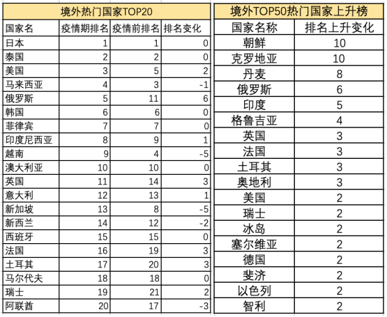 當(dāng)人們都宅在家時,“云旅游”是目的地和旅游平臺與游客保持緊密溝通的有效方式。馬蜂窩平臺上境外熱門國家前二十名的排行榜中,越南和新加坡由于入境限制政策發(fā)布較早(2月1日越南發(fā)布禁航令,新加坡2月2日起限制中國游客入境),熱度排名下降較為明顯。而尚未受到疫情侵?jǐn)_和影響的歐洲國家,尤其是新興小眾目的地,由于旅游門檻較高、風(fēng)景獨特,如克羅地亞、丹麥等,在“云游”熱潮下獲得了更多用戶的關(guān)注,熱度排名普遍上升。