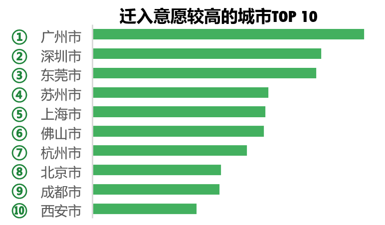 遷入意愿較強(qiáng)城市TOP10發(fā)布:一線及省會城市遷入意愿較高