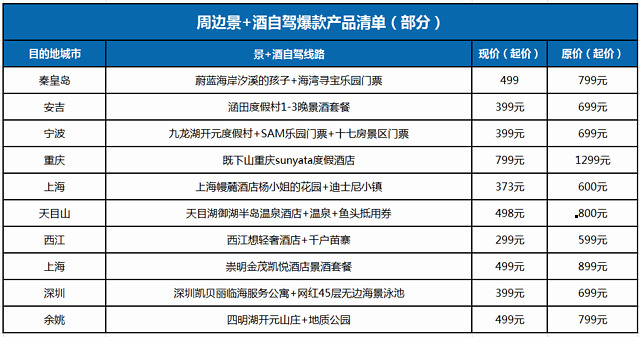 城市周邊旅游,儼然已經成為現代人舒緩壓力的一個重要的方式。對于短期假期而言,本地周邊游是性價比較高的選擇;時至今日,周邊游雖然是從本地視角出發,但為用戶提供的已經不再是那些所有人都去過的甚至是人擠人的景點,而是本地城市周邊一些具有特色、不為人知的旅游目的地;相比常見的旅游體驗,周邊游提供的是整體打包出行方案,不再需要用戶再單獨單項行程進行搜索;