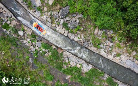 在落兒嶺鎮(zhèn),霍山大峽谷漂流進(jìn)入一年中的旺季。全長(zhǎng)約8公里的水道水質(zhì)優(yōu)良、落差較大,已成為華東地區(qū)小有名氣的漂流“打卡地”。7、8月份,單日游客最多時(shí)能接近萬(wàn)人。