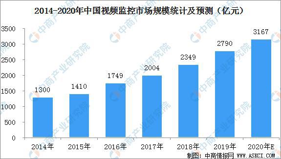 近年來,我國監控系統市場經歷了持續強勁的發展。其中,視頻監控市場的發展速度超過全球其他地區。據數據統計,2012-2016年我國視頻監控行業增長率均保持在15%以上。2017年,我國視頻監控市場規模突破2000億元。初步估算2019年,中國視頻監控市場規模達到2790億元。中商產業研究院預計,到2020年底,全國視頻監控市場規模將突破3000億元。