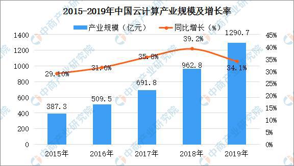 目前,中國云計算市場處于快速發展階段,容器、微服務等技術的不斷成熟,推動著云計算的變革。隨著云計算的應用場景的不斷拓展,云計算的應用已深入達到政府、金融、工業、交通、物流等傳統行業。當前,中國的云計算市場規模整體規模較小,與全球市場規模仍存在一定的差距。數據顯示,2018年全球云計算市場規模突破3000億元。伴隨著企業逐漸傾向于追求數字化商業戰略,傳統IT服務向云端服務轉變,全球云計算市場規模將進一步增長。在國內,2019年中國云計算產業市場規模將超1000億元左右。