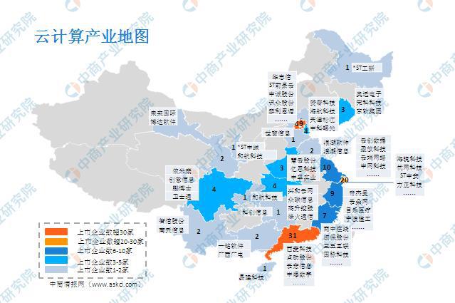 從云計算產業的企業分布來看,目前全國各省市范圍內均有分布。其中云計算企業分布主要以北京以及東部沿海地區為主。據中商產業研究院數據統計顯示,云計算企業分布最多的是在北京,數量近50家;其次,廣東省則分布有31家,上海為20家,其余省份均在10家及以下。