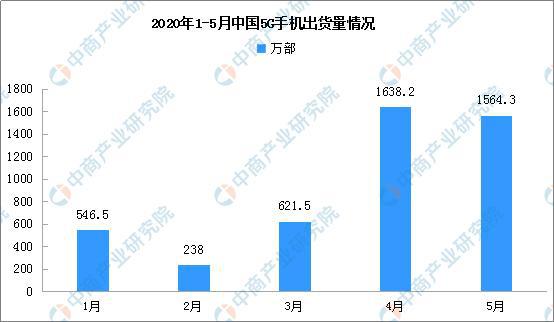 據信通院數據顯示,2020年5月,國內市場5G手機出貨量1564.3萬部,占同期手機出貨量的46.3%;1-5月,國內市場5G手機累計出貨量4608.4萬部,占比為37.0%。