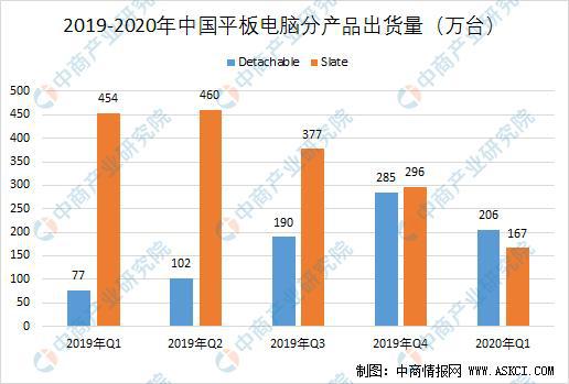 數據顯示,2020年第一季度中國平板電腦市場出貨量約373萬臺,其中Slate Tablet(傳統直板式平板電腦)出貨量約167萬臺,同比下降63.3%;DetachableTablet(可插拔鍵盤平板電腦)出貨量約206萬臺,保持168.2%的大幅同比增長。