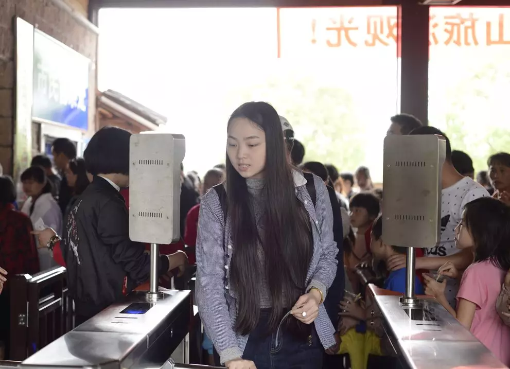 (游客正在通過(guò)人臉識(shí)別進(jìn)入景區(qū))