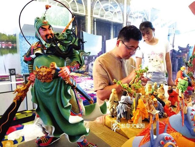 一把把寬大厚實的手工蒲扇、一個個惟妙惟肖的面塑和糖人、一幅幅金燦燦的麥稈畫……活動現(xiàn)場,琳瑯滿目的非遺工藝品吸引了眾多上海市民駐足圍觀,這些特色工藝品無不體現(xiàn)著鹽都區(qū)非遺項目的獨(dú)特魅力和鹽城文旅特色。