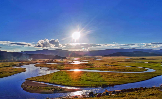 紅原月亮灣是黃河上游重要水源——白河(嘎曲河)的一段,因草原濕地的影響,白河在紅原境內呈彎彎流淌的流向,美麗寬廣的草原就像柔軟的綠色地毯鋪在夢幻的大地上,清澈的河水在草原上劃出道道舒緩優美的弧線,恰似彎彎的月亮,“月亮灣”也因此而得名。月亮灣是紅原大草原生態旅游風景區內最美的地方。