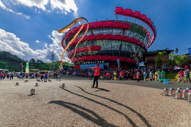 玉輪旋轉擎天柱,紫虬盤卷立地樁。百尺鞭濤布雷陣,千仞陀風覆雪疆。世界鞭陀文化博物館坐落于海坪小鎮東廣場,其外形來自“旋轉的陀螺”,集收藏、研究、展示、培訓、表演等功能于一體的展館,形成了以民間民俗體育運動為主題的鞭陀文化中心,為國內外鞭陀愛好者提供了展示交流、學習的平臺,也為鞭陀文化的發揚提供了載體。2018年7月20日,經世界紀錄認證官方工作人員現場審核,該博物館被確認為“世界上最大的鞭陀文化博物館”。該館分三層,第一層為展廳,以陀螺、鞭桿、鞭繩展品展示為主;第二層為智慧旅游廳,該廳利用云計算、物聯網等新技術,通過大數據,借助便攜的終端上網設備,收集分析野玉海度假區的旅游資源、旅游活動、旅游者等方面的信息;第三層為多功能會議廳,能夠滿足各種會議、電影播放、文藝演出等需求。
