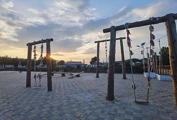 漸漸駛離延吉西站,窗外的稻田郁郁蔥蔥,一叢叢青磚黛瓦的朝鮮族民居鑲嵌在延綿起伏的山巒之間。車子離開公路,駛?cè)胍粭l蜿蜒曲折的鄉(xiāng)路,路旁的住房多了起來,裊裊炊煙也開始生動(dòng)具體,我們慢慢進(jìn)入了龍井市。