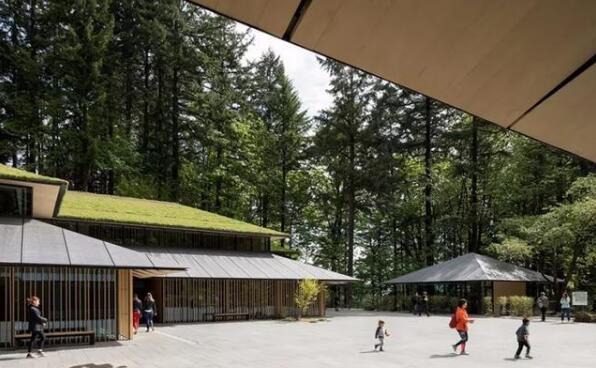 這些建筑受到包圍神圣寺廟的日本建筑風格影響,呈現(xiàn)出典型的日式風格。雙層的坡屋頂類似東方寺院中的寶塔型,其中最上一層被種植了綠化,類似于日本傳統(tǒng)花園中建筑的茅草屋頂。