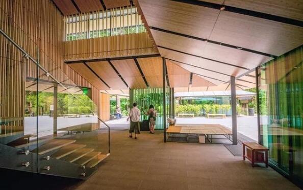 文化村于2017年4月2日正式對外開放,作為一處擴建工程,其位于花園大門外面并通往花園。隈研吾利用山林間和室內(nèi)空間的高低落差,做了循序漸進的引導設計。參觀者可以舒服有序地進入園林,不會在偌大的空間里暈頭轉向。