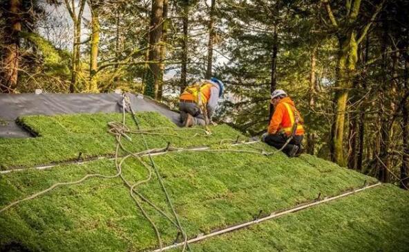 建筑屋頂?shù)淖饔靡膊豢尚∮U,屋頂外層覆蓋了綠色植物用來吸收雨水,防止水分流失。