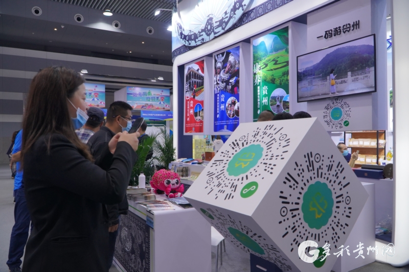 據了解,立方體展覽臺上的二維碼是由貴州省文化和旅游廳全新推出的“一碼游貴州”全域智慧旅游平臺二維碼,該平臺也是本次貴州館展覽的一大亮點。