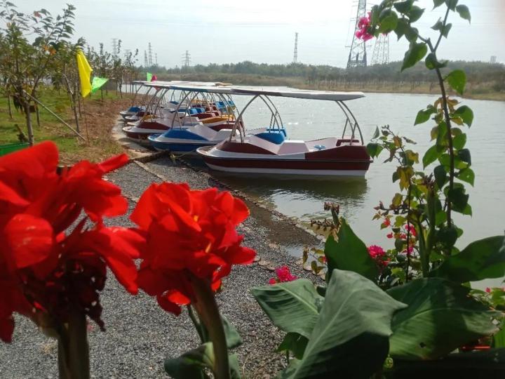 “今年國慶期間,光游輪、蹦蹦床每天有5000多元的經營收入。每逢周末、節假日,村里10余家農家樂家家爆滿。這在以前想都不敢想!”10月20日,記者來到了花園街道新姜村,秋日暖陽下,西棲港碧波蕩漾,湖上船只井然排列,岸邊早櫻枝葉蔥蘢,小木屋旁的蹦床上游客歡樂嬉戲......