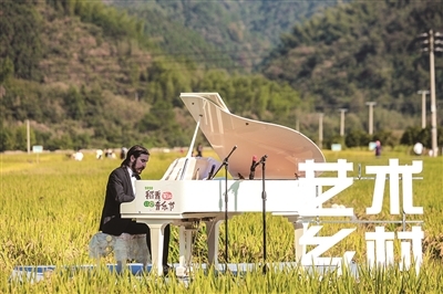 今年10月,百江鎮(zhèn)聯(lián)盟村的村民坐在豐收的稻田里與各地游客一起欣賞了一場“國際范”的音樂節(jié),遠處稻浪翻滾,近處是悠揚的歌聲,錯落在田間的是畫家們凝神作畫的場景。