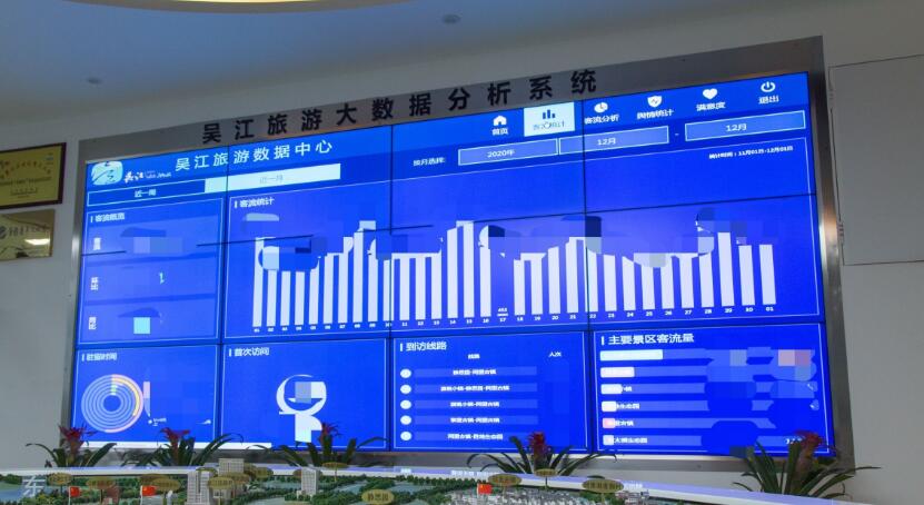 走進該服務中心,記者發現,這里科技感滿滿。首先映入眼簾的是一個占滿整面墻壁的大屏幕,上面清晰地展示著吳江各景區景點的大數據監測數據。吳江區旅游服務中心主任陳偉介紹,這個大數據分析系統分客流統計、客流分析、輿情統計、滿意度等板塊,景區游客量、游客的游覽順序、游客在景點的駐足時間、游客來自哪里……各項詳細數據在大屏上實時更新,一目了然。