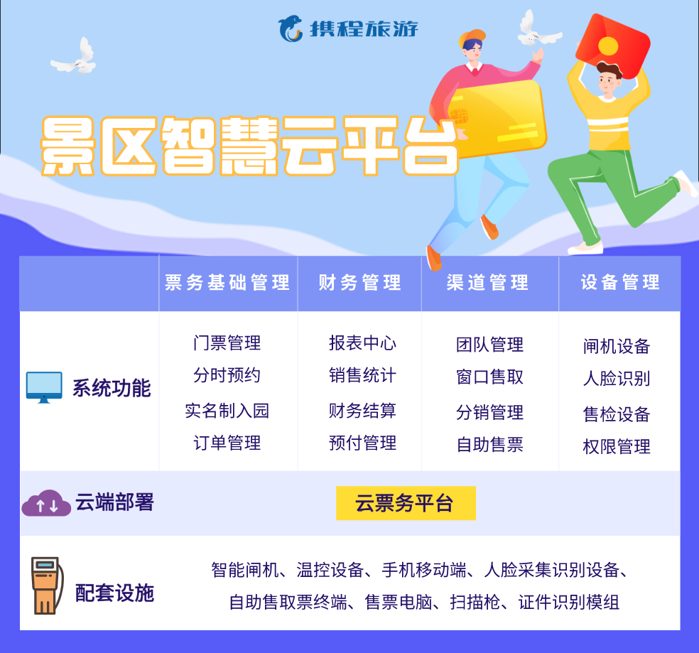早在2020年4月,攜程就發布了景區智慧云平臺整合方案,為景區提供免費版、升級版和拓展版等定制級智慧化升級方案。該方案針對景區購票、入園、游玩和售后四大環節,提供技術解決方案,支持景區實現“全渠道、全場景、全業態”的實名預約。此外,攜程大數據還為各個環節提供支持,為用戶畫像、服務質量、市場大盤和交叉引流提供多方位的服務。