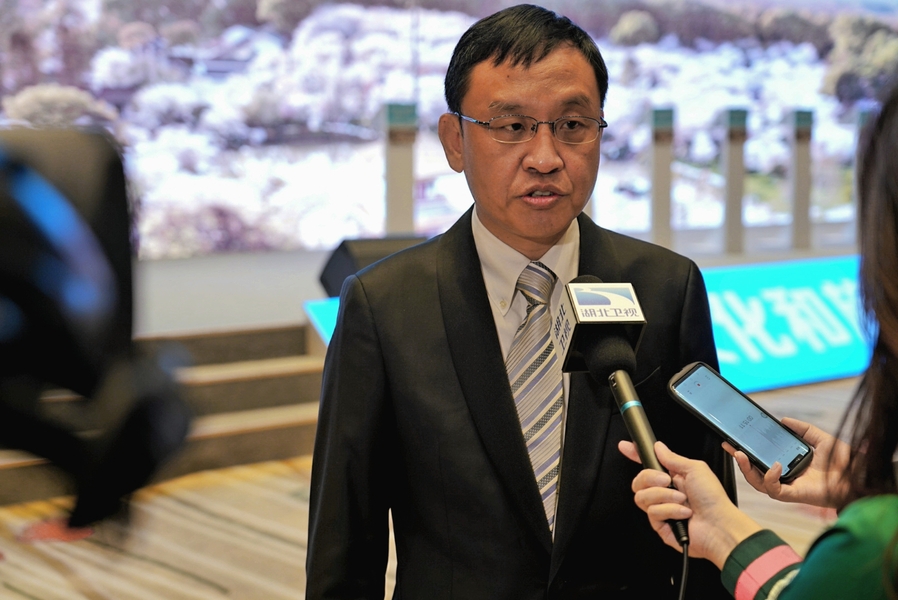 圖為中國(guó)文化傳媒集團(tuán)黨委書記、董事長(zhǎng)兼《中國(guó)文化報(bào)》社社長(zhǎng)劉強(qiáng)會(huì)后接受媒體采訪