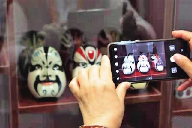 京劇臉譜展區,酒器上繪著造型各異的臉譜,把酒文化和傳統戲劇文化融合在了一起。
