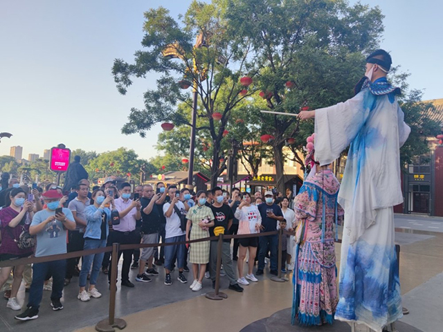西安大唐不夜城的一位工作人員介紹,自2019年以來,大唐不夜城著力推動“文創 旅游”深度融合發展,將文化創意植根于地方文化土壤。小鏡糕味道香甜、口味濃郁;糖畫師傅的攤位前擠滿了饞嘴的小孩兒,拽著爸爸衣角非要再來一個;造型各異的秦腔戲劇臉譜擺放在“陜西禮物”小店里,招攬著過往游客……在不夜城中,特色小店讓游客吃到嘴里、拿在手中、穿在身上,體驗西安的“味道”。