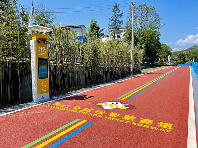 整條賽道全長43公里,途經20多個村寨,沿錦江河鋪設,終點訖于江口兩河口河岸。沿途每5公里配置一個芯片數據采集點,可通過人臉識別和芯片識別兩種方式自動記錄運動成績,同時配置陪跑燈光、自動感應淋浴系統、智慧AED救援站、智能心率柱、智能存包柜等設備設施,實現科技和生態、體育和旅游的完美交融,讓廣大運動愛好者樂在其中,獲得更多的參與感和體驗感······