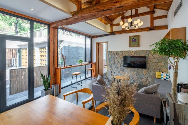 山間一舍是其中的一家。寬敞的院子里,東面的民房是原址翻建,主要是主人用房和共享空間,南北兩排是新建的客房。投資建設(shè)者是一對(duì)來(lái)自沈陽(yáng)的夫妻。2016年起,投資近600萬(wàn)元,把民宿建設(shè)得有模有樣,有了一定客源。