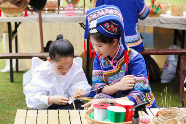 除了美食和表演,“錦繡廣西”村寨中的開放T臺秀。父母與孩子一同體驗非遺制作技藝,親手制作屬于自己的非遺物品,并登上T臺展示。這種親子互動的方式不僅讓孩子們感受到了非遺文化的樂趣,也讓大人們更加深入地了解了非遺文化的內(nèi)涵。