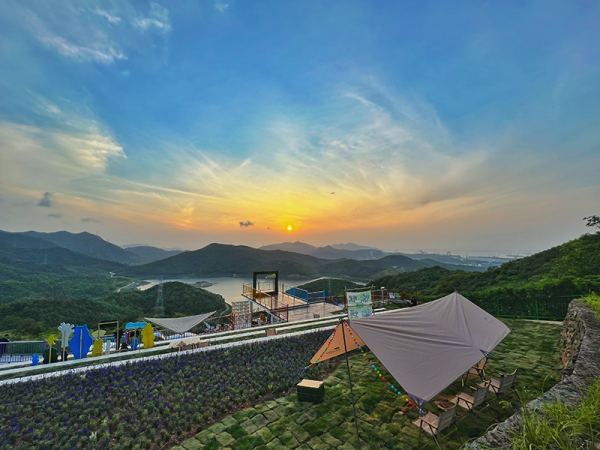 林間參天古木挺拔入云,翠綠的枝葉交織成一道道綠色屏障,將外界的喧囂與紛擾隔絕在外。綠蔭下,一頂頂天幕支起,三五人圍坐其中,或談笑風生,或閉目養神。