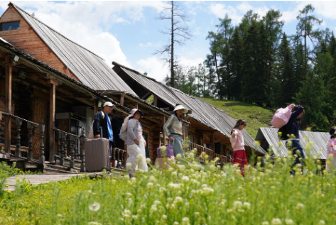 初夏午后,阿爾泰山蒼翠欲滴,牛羊成群。新疆哈巴河縣齊巴爾鎮(zhèn)吉林新村人頭攢動,來自五湖四海的游客走進電視劇《我的阿勒泰》拍攝地,尋找“詩與遠方”。
