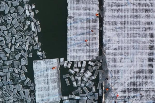 從采冰節這一天開始,每天有千余名采冰工人、近五百輛運輸車參與到采冰工作中,日采冰量可達10000立方米。再等待十余日,便可見證一塊塊普通的冰塊如何通過冰雪匠人的巧思妙手,完成它們的神奇蛻變。