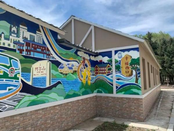 西口村也是遠近聞名的藝術村,主題不同、風格各異的墻繪將村子裝點得五彩繽紛。西口村還對文化特色進行提煉,打造文化IP,開發設計出“西西”“皮皮”“呆呆”等文創產品,并利用“阿爾山鄉村振興直播站”開設電商店鋪,組建新媒體團隊,塑造西口旅游品牌。目前,西口村在抖音、快手平臺的官方賬號瀏覽量接近千萬。
