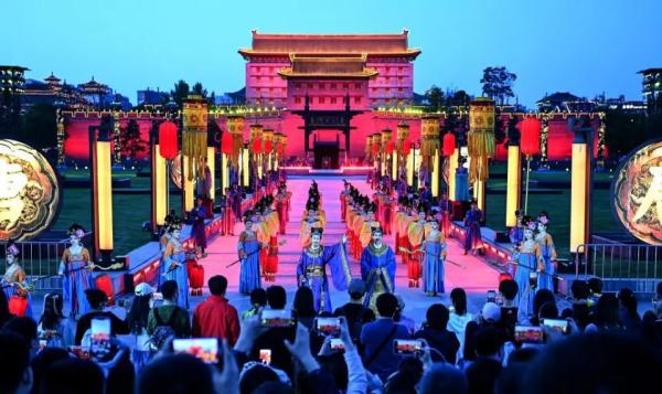 發(fā)展出題目,改革做文章。阿房宮遺址旁,歷史劇《赳赳大秦》拉開帷幕,秦王朝一統(tǒng)山河的長(zhǎng)卷漸次展開;秦漢沙河古橋遺址旁,《絲路之聲》以音樂劇的形式展現(xiàn)漢代長(zhǎng)安市井的繁華;驪山腳下,冰火《長(zhǎng)恨歌》再現(xiàn)盛唐的風(fēng)華與浪漫;“折柳送別”的灞河之畔,歌舞劇《駝鈴傳奇》帶著觀眾體驗(yàn)唐代絲綢之路的冒險(xiǎn)與驚奇;“曲江流飲”的芙蓉園里,研習(xí)東倉鼓樂50載的趙筱民以鼓、箏、琵琶等二十余種中國傳統(tǒng)樂器,奏響“中國古代交響樂”;厚重巍峨的永寧門下,游客們?cè)凇秹?mèng)長(zhǎng)安—大唐迎賓禮》中感受中華禮儀文化的魅力。