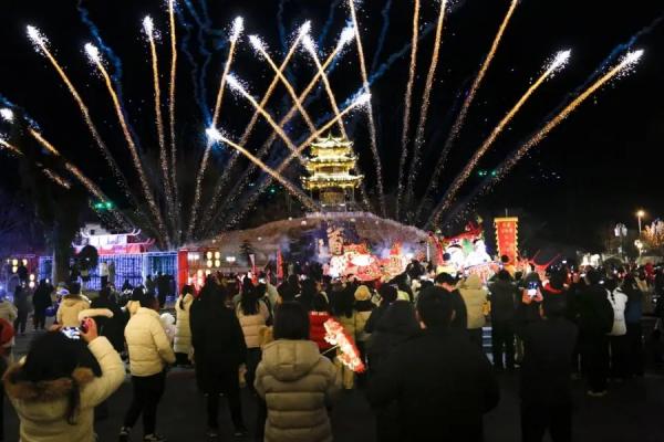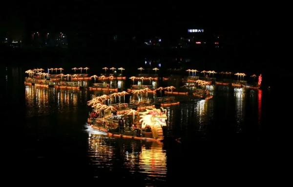 夜幕降臨,華燈初上。近兩年成為黃山文旅產品爆款的百米金龍從流光溢彩的橫江中蜿蜒游來。除了集中展示的如愿燒火塔、齊云打鐵花、白岳煙花秀外,還有噴火、炭花舞、齊福儺舞等節目,火花、煙花交織,展現出齊云山度假區煥新出發的力量,照射出“越夜越精彩”的休寧魅力,更折射出新一年狀元休寧向上向新的力量。