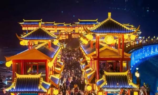1月20日晚,廣安濱江路南段燈火輝煌,人聲鼎沸,叫賣聲在夜空中回響,備受矚目的“千年渠江戀·廣安不夜城”開啟試營業。這座融合廣安文化與現代商業休閑元素的新地標,吸引了眾多的市民和游客前來打卡。