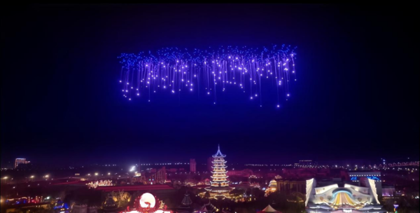 無人機技術正在重構文旅產業的體驗維度,從單一的視覺觀賞轉向多維交互與場景融合。溫州“空中地標”項目將無人機編隊與人工智能結合,推出“數字煙花”“空中新聞站”等場景。例如,市民通過短信發送內容,當晚即可在夜空呈現“情書”光影;新聞資訊通過AIGC工作站實時投射至城市上空,形成“空中直播秀”。此類創新不僅降低傳統煙花的環境風險,更以科技手段激活文化傳播的互動性。
