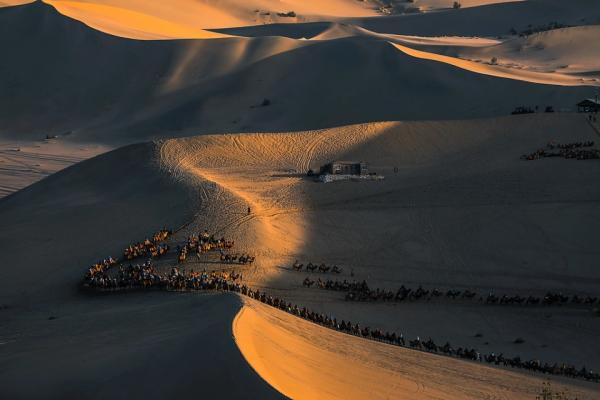 雪山與沙漠的夾峙下,這些河流沖積出的綠洲串成珍珠鏈般的生存空間,不僅養育了城市與村莊,更為絲綢之路的商旅提供了穿越戈壁的生命驛站。