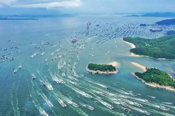 8月16日正午12:00,陽光灼熱,海風驟緊。南海伏季休漁期正式結束的號角,在綿延海岸線上齊齊鳴響。博賀港內,千艘漁船汽笛震天,白帆如云;陽江海域,3400余艘漁船劈波斬浪,駛向蔚藍。岸上快門聲此起彼伏,漁民揮動的紅旗漸漸模糊成海平線上的紅點。
