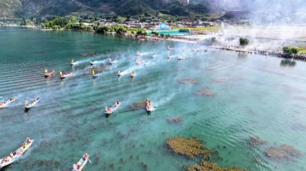 清晨的瀘沽湖面泛起薄霧,豬槽船隊(duì)劃開鏡面般的湖水,摩梭青年盛裝站立船頭,吟唱著千年傳承的山歌。2025年9月16日,一場(chǎng)跨越時(shí)空的文化盛宴正在高原湖畔上演。這一天,鹽源瀘沽湖與木里香格里拉湖兩地同步舉辦慶典,以“世界瀘沽湖、文旅促‘三交’”為主題,聚焦打造“錦繡天府·安逸四川”“彝海結(jié)盟地·五彩大涼山”文旅品牌。